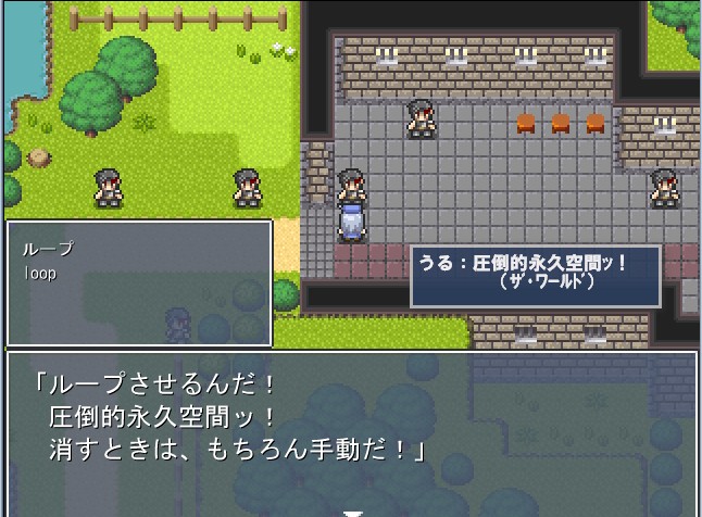 ウディタ用アニメイドツールNanimEditor-オプション説明-2人目 loop wait Category:Юオプション説明2人目 Date:2013年03月16日 ループとウェイトを説明しますループの説明一文ですわかったような顔で進みましょうきっとずっと繰り返すんです 圧倒的に 青の円のぐるぐる回るアニメーションが終わってからwait付アニメの矢印が回転しだすという機能ですね。でも並列のアニメは消えないみたいです。使いどころは謎です次回はname! PR
