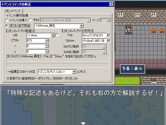 ウディタ用アニメイドツールNanimEditor-再生コモン項目説明-後編 Category:第4章ウディタ用アニメイドツールNanimeeditor Date:2013年03月12日 オプション説明次回、ウルファールはなにを思いつくのか!? PR